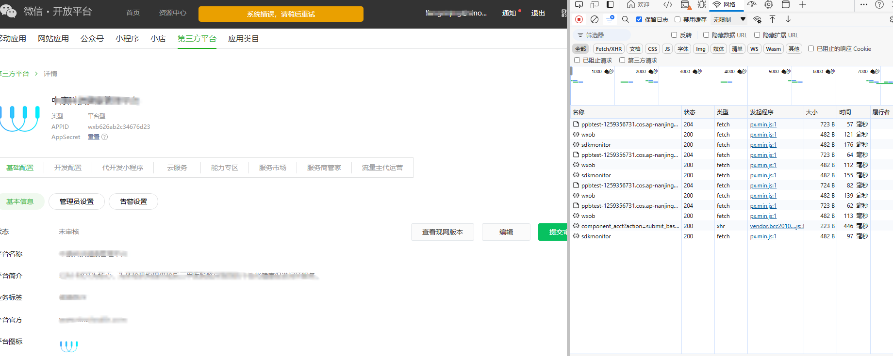 你好,请问在修改基本信息时保存后,提示系统错误,再继续点击【提交审核】可以成功吗?若还是不行,麻烦提供下F12的页面报错截图及最新操作时间点信息