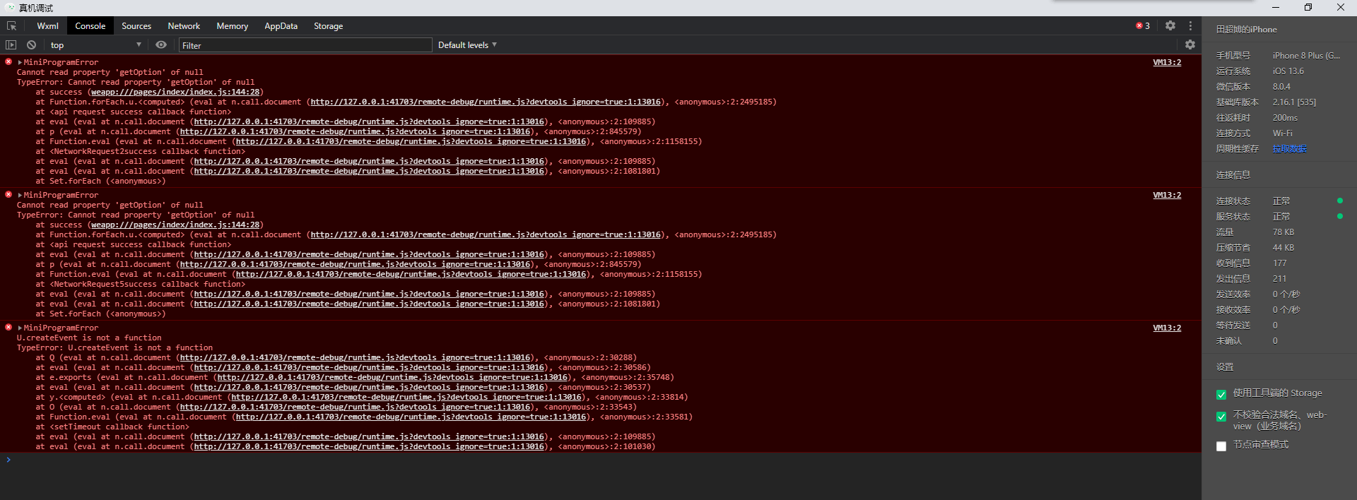 但是在真机调试中就会报错