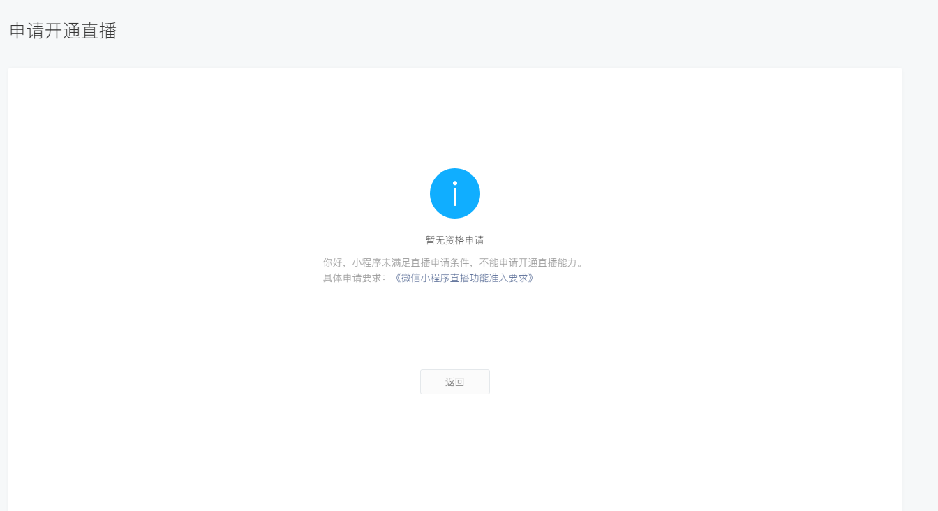 你好, 经核实该小程序主体类型为其它组织,暂不符合微信小程序直播功能准入要求,目前小程序直播功能仅对国内企业主体开放。
