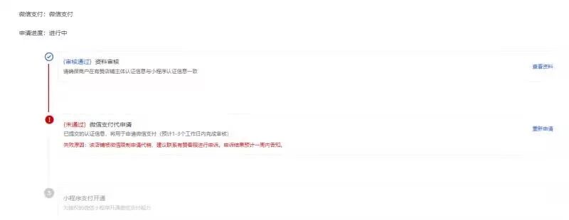 有赞后台申请小程序支付时,出现失败原因,该店铺申请代销支付受限,不知道是什么原因?各种方方式都试过了,还是无法得到解决。腾讯的电话永远是没有人接的啊,很急着运营!