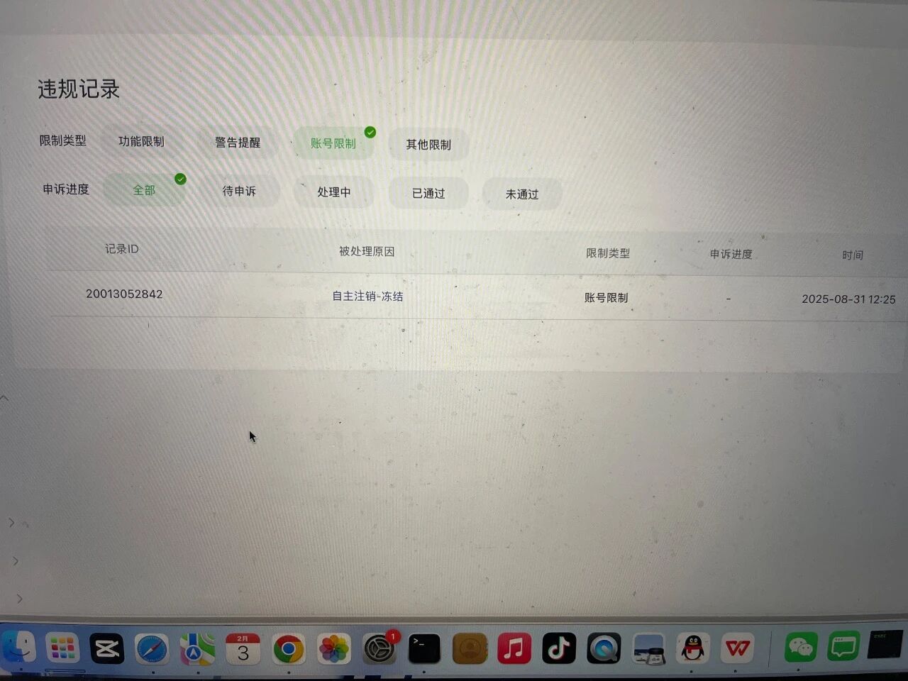 我的小程序发生注销后终止并撤销注销流程,从新认证和备案。但是违规记录中一直显示“自主注销-冻结”账号限制。我要解除这个限制没有通道