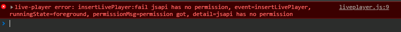 live-player error: insertLivePlayer:fail jsapi has no permission, event=insertLivePlayer, runningState=foreground, permissionMsg=permission got, detail=jsapi has no permission,类目选好了,工具-视频客服,接口设置:实时播放音视频流,也调好了,但是还是返回错误