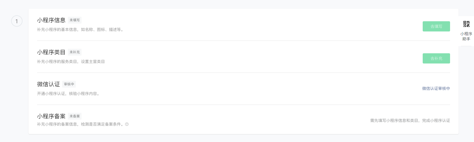 目前是先认证,填写信息,在进行备案,最后才能发布小程序(必须要完成备案)
