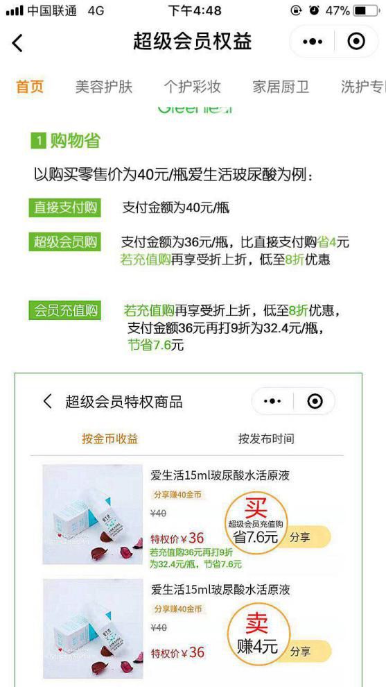 超级会员可以转发化妆学堂、产品测评等干货内容给好友,这些知识分享是非常受欢迎的,很多新客户看着看着,就被种草了,然后就在小程序里面下单了,这样的裂变才更有效率。