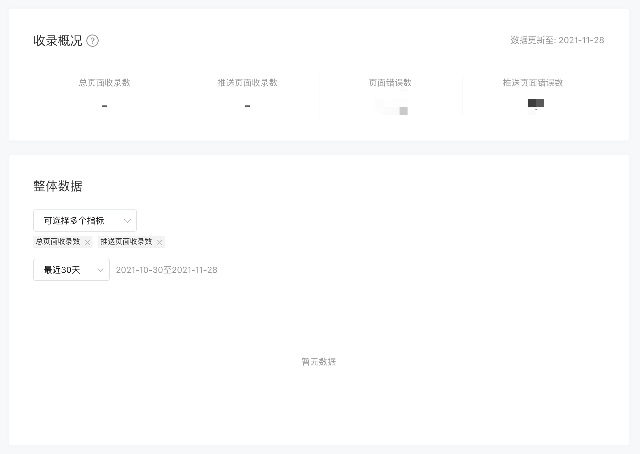 小程序后台开启了页面收录,并且推送了页面路径,但是数据概况里无法看到页面收录数。