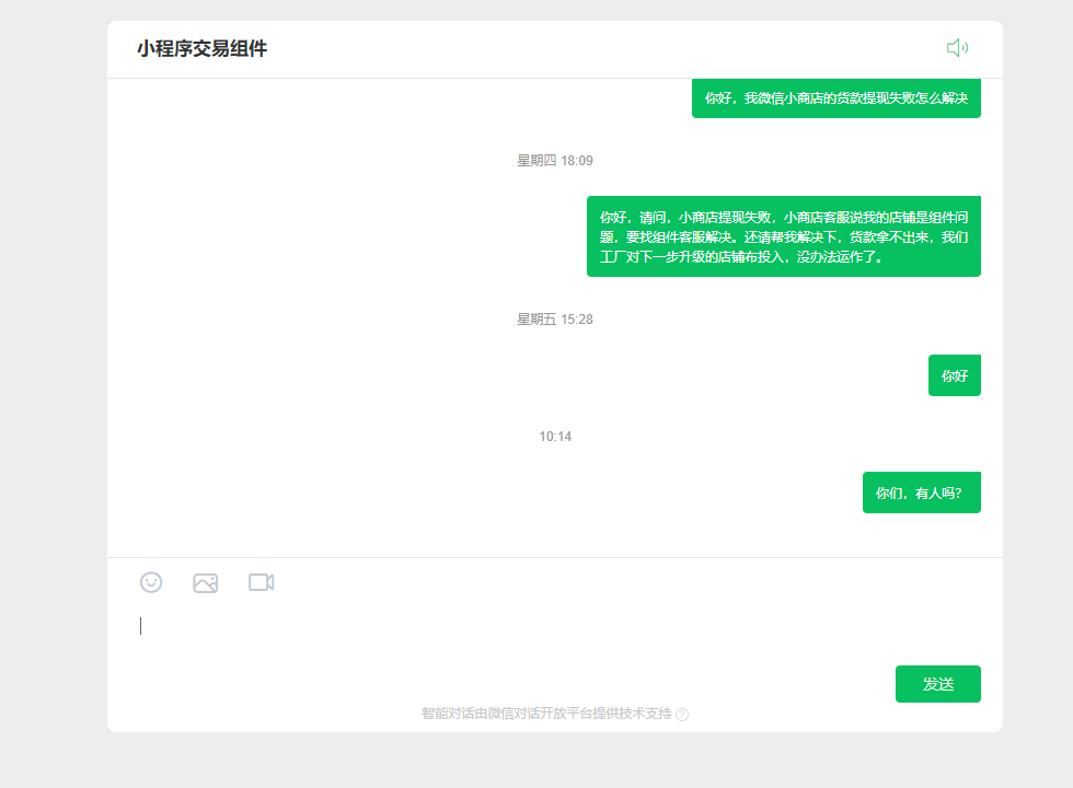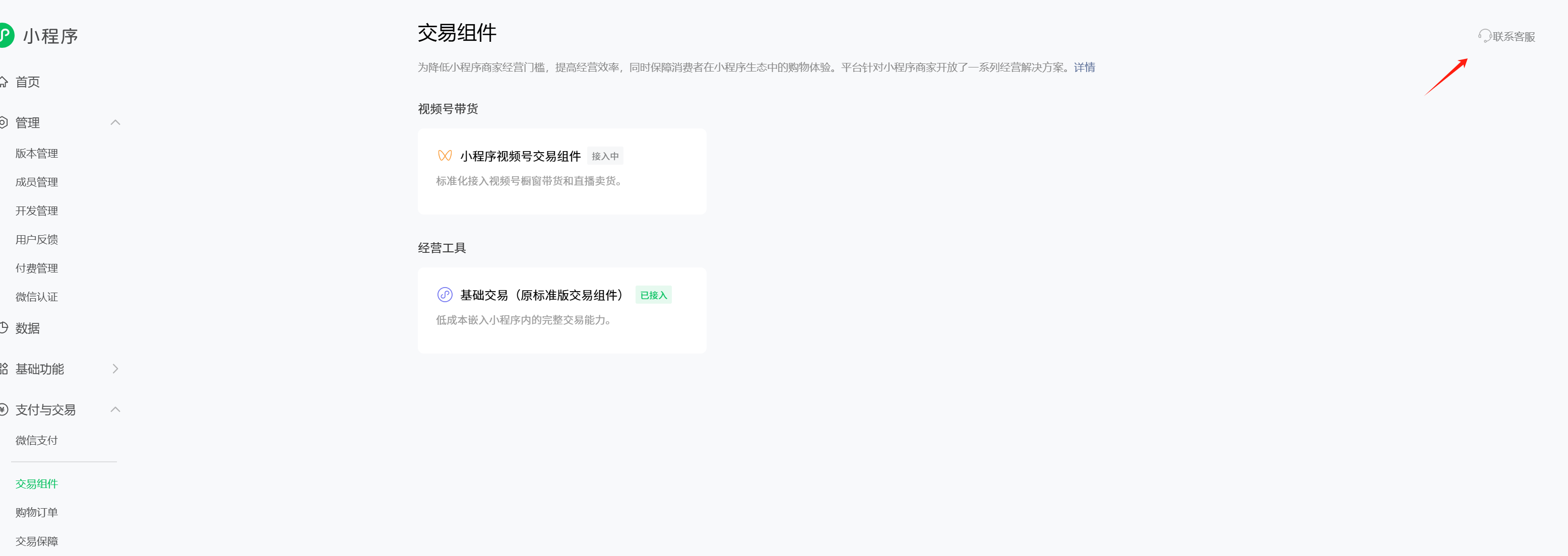 https://mp.weixin.qq.com/ 交易组件-右上角联系客服