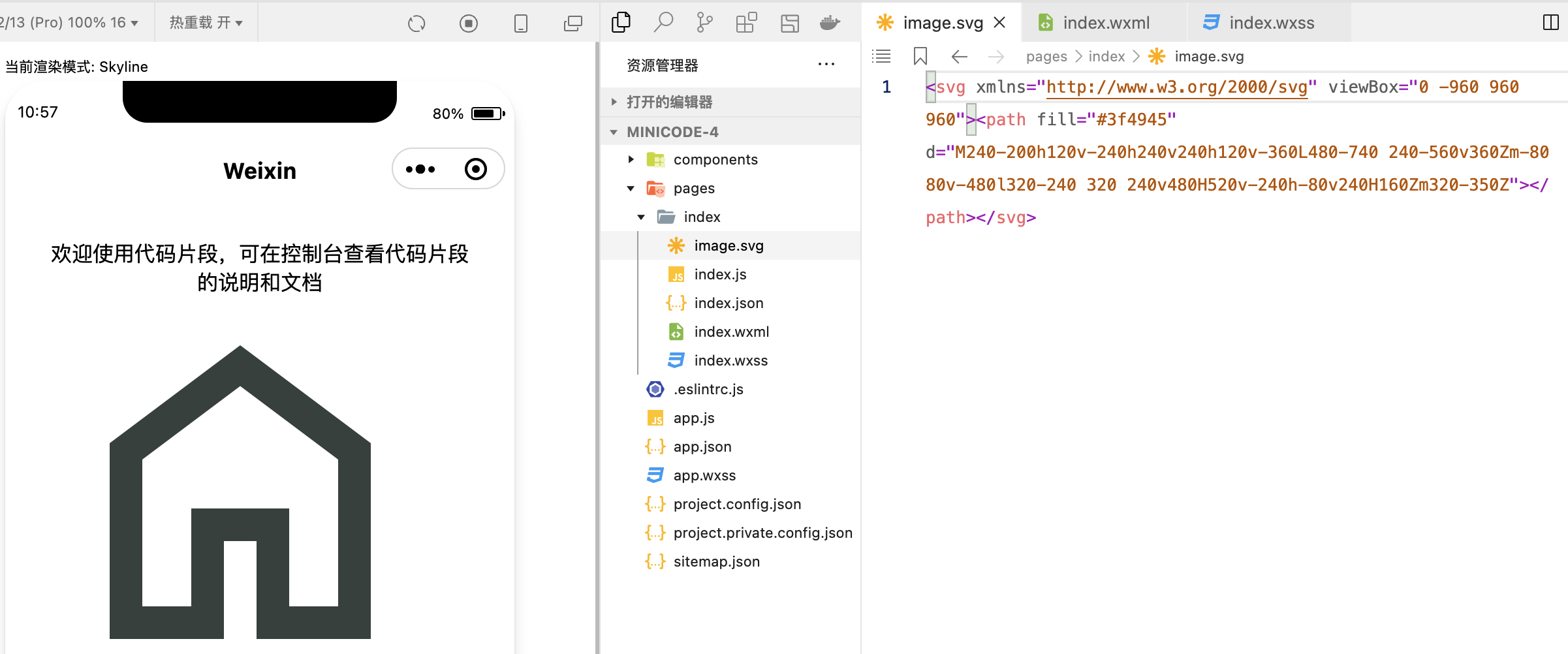 由于代码片段不支持skyline模式运行,请官方人员复制以下示例到skyline项目里运行看看。