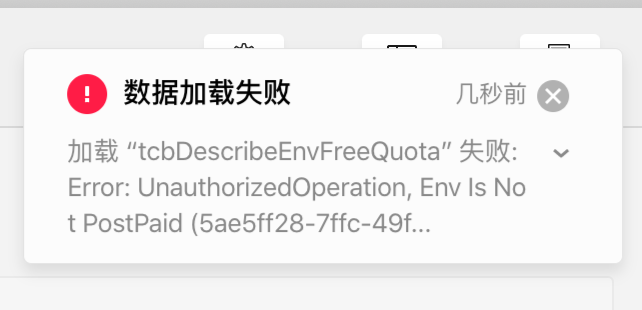 加载 “tcbDescribeEnvFreeQuota” 失败:Error: UnauthorizedOperation, Env Is Not PostPaid (5ea7a012-2e7e-4e7...