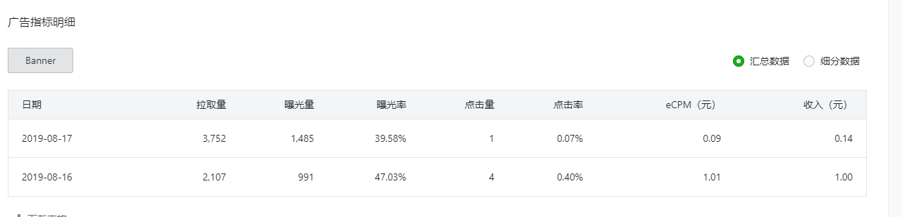 banner广告收益是按有效点击计算的。建议优化接入的场景/位置,提高用户点击意愿。
