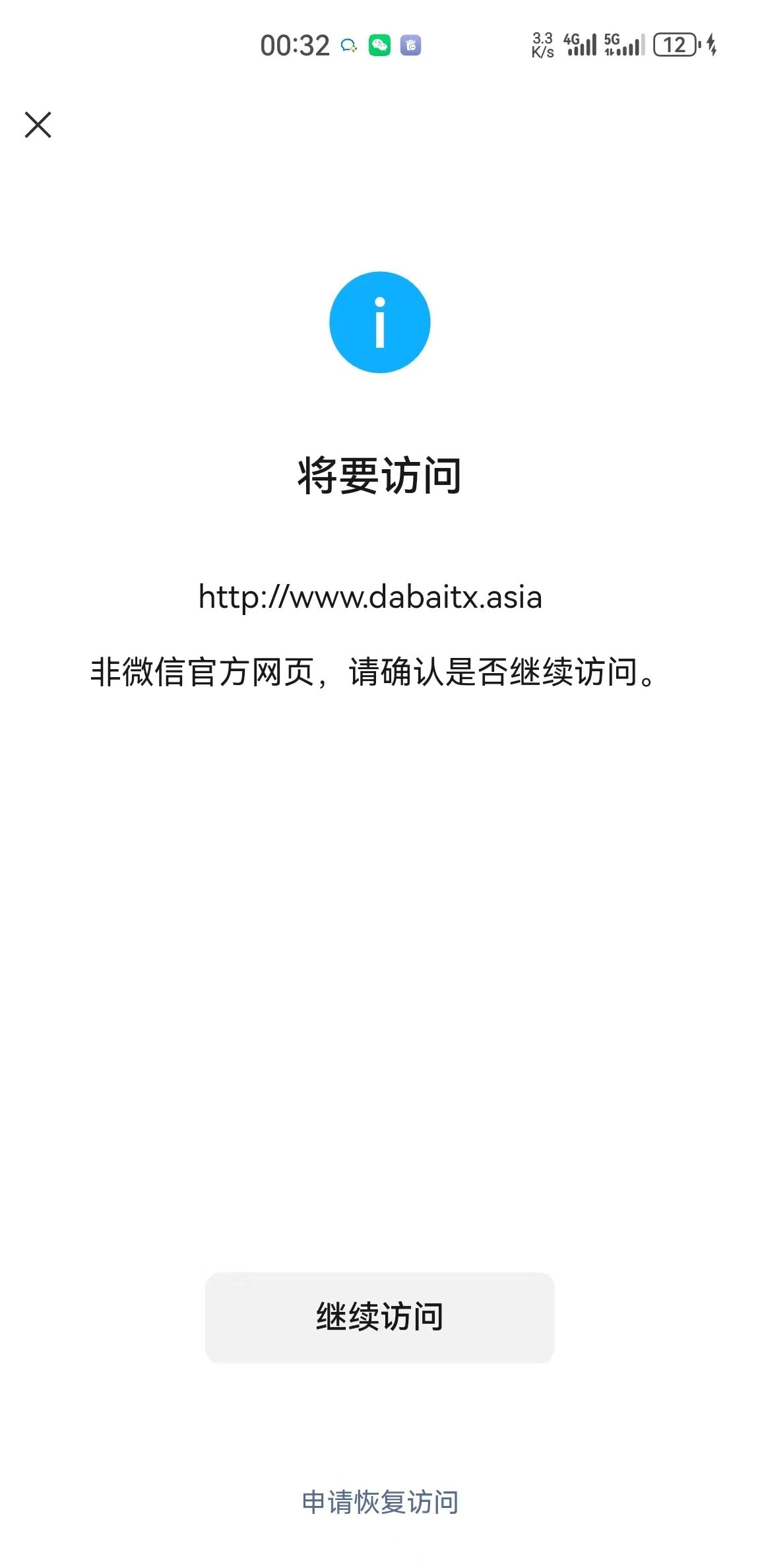 新域名微信访问网站出现“无法确认该网页的安全性”,新注册域名空白的,进服务器后也出这个提示!