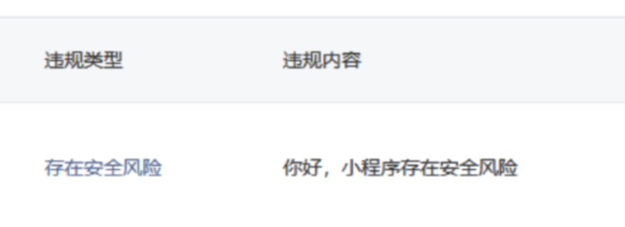 如图,小程序上线被提示存在安全风险。请问具体原因是什么。