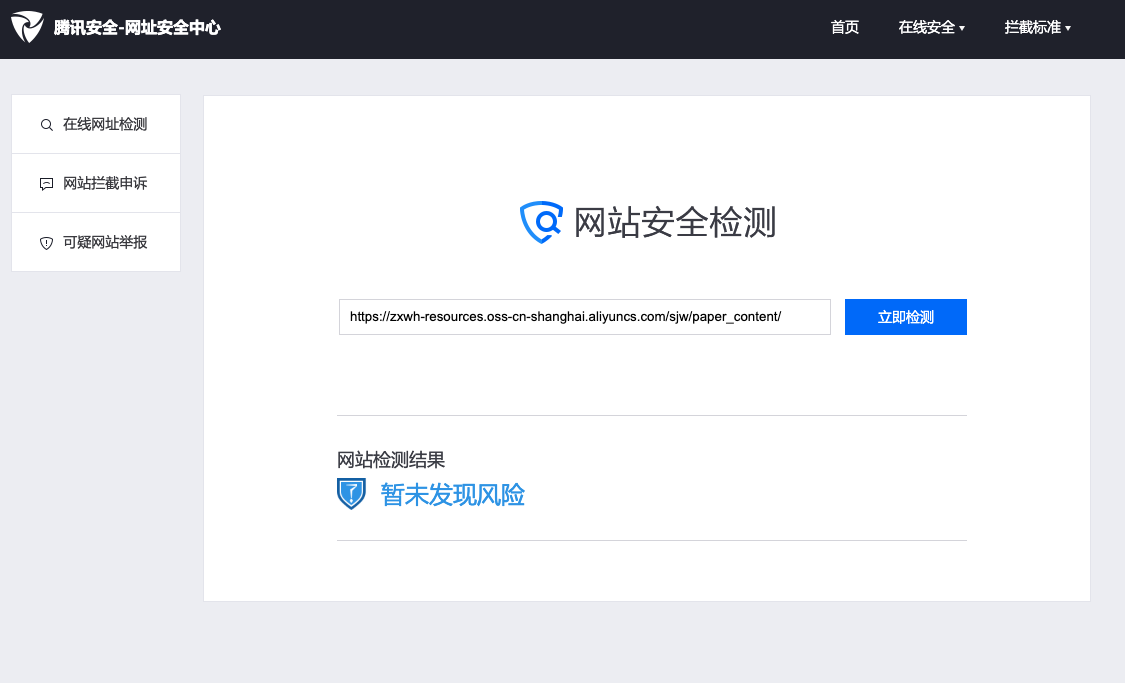 另外该网址在腾讯的网址安全中心检测,也未检测出任何风险和违规。