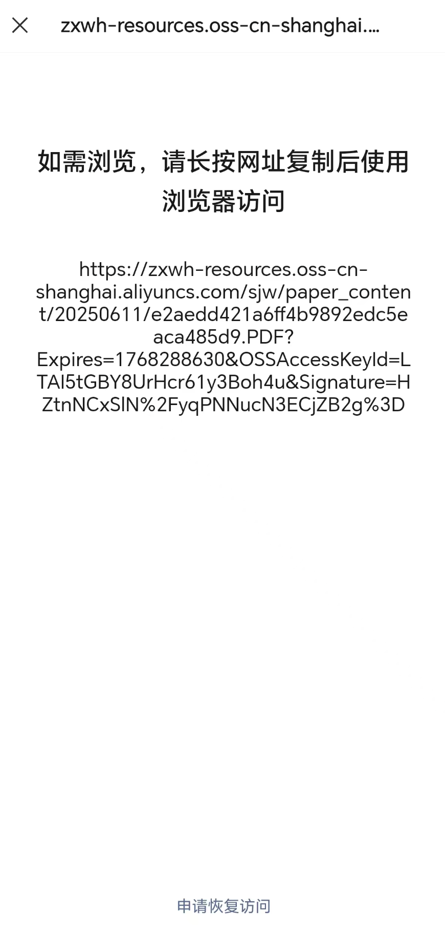 我司是提供教育数字资源的平台,客户会从我们的平台下载给孩子的电子学习资料文件,以前在微信里打开下载的文件路径https://zxwh-resources.oss-cn-shanghai.aliyuncs.com/sjw/paper_content/*,可以正常打开手机的浏览器完成下载,但是现在就会提示:如需浏览,请长按网址复制后使用浏览器访问。