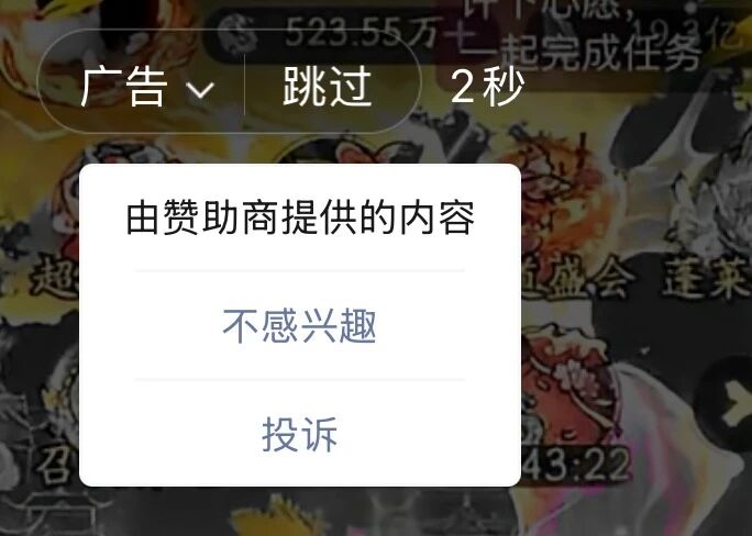 如果广告频繁弹出影响体验,可在广告组件内发起投诉。