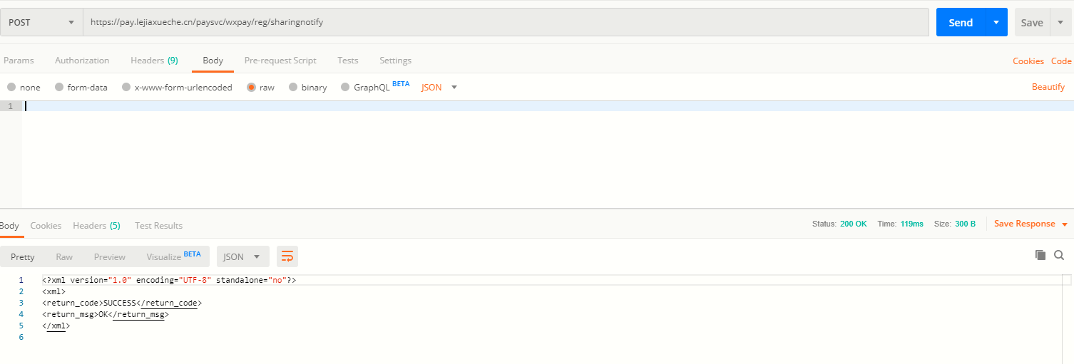 @RequestMapping(value = "/sharingnotify", produces = {"application/json;charset=UTF-8"})public String sharingnotify(@RequestBody String str) { logger.debug("异步接收微信分账结果通知,str=[" + str + "]"); try { } catch (Exception e) { e.printStackTrace(); // todo 需要记录本次异常情况 } finally { // 这里表示已收到该服务通知 return success(); }} |
