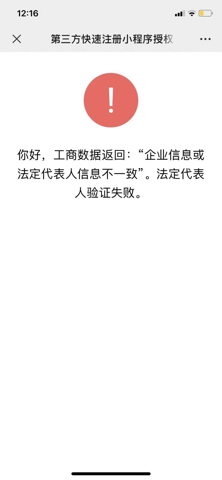 “企业信息或法定代表人信息不一致”。法定代表人验证失败。