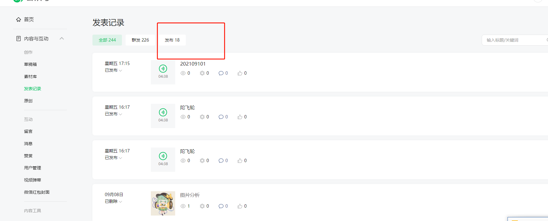 同样,发表记录中是可以直接点击发布栏目,从而查看发布的图文。因此无需再次重新剥离,造成功能重复