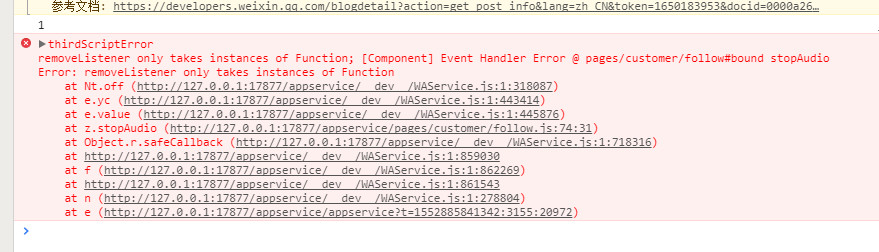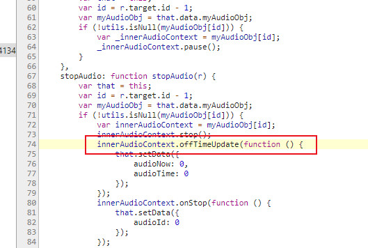 playAudio:function(r){ let that = this let myAudioObj = that.data.myAudioObj utils.consoleLog(r.target.id) let id = r.target.id-1 var innerAudioContext = utils.isNull(myAudioObj[id])?wx.createInnerAudioContext():myAudioObj[id] myAudioObj[id] = innerAudioContext // 判断有无上一段音频播放状态,如果有则进行停止重置(非暂停哦) if(that.data.audioId>0 && myAudioObj[that.data.audioId-1] && !myAudioObj[that.data.audioId-1].paused){ myAudioObj[that.data.audioId-1].stop() } let audioData = that.data.audioData innerAudioContext.src = audioData[id].site innerAudioContext.play(); innerAudioContext.onPlay(() => { that.setData({ audioId:r.target.id }) innerAudioContext.onTimeUpdate(() => { that.setData({ audioNow:innerAudioContext.currentTime, audioTime:innerAudioContext.duration }) }) }) }, pauseAudio:function(r){ let that = this let id = r.target.id-1 let myAudioObj = that.data.myAudioObj if(!utils.isNull(myAudioObj[id])){ let innerAudioContext = myAudioObj[id] innerAudioContext.pause() } }, stopAudio:function(r){ let that = this let id = r.target.id-1 let myAudioObj = that.data.myAudioObj if(!utils.isNull(myAudioObj[id])){ var innerAudioContext = myAudioObj[id] innerAudioContext.stop() innerAudioContext.offTimeUpdate(() => { that.setData({ audioNow:0, audioTime:0 }) }) innerAudioContext.onStop(() => { that.setData({ audioId:0 }) }) } }, |