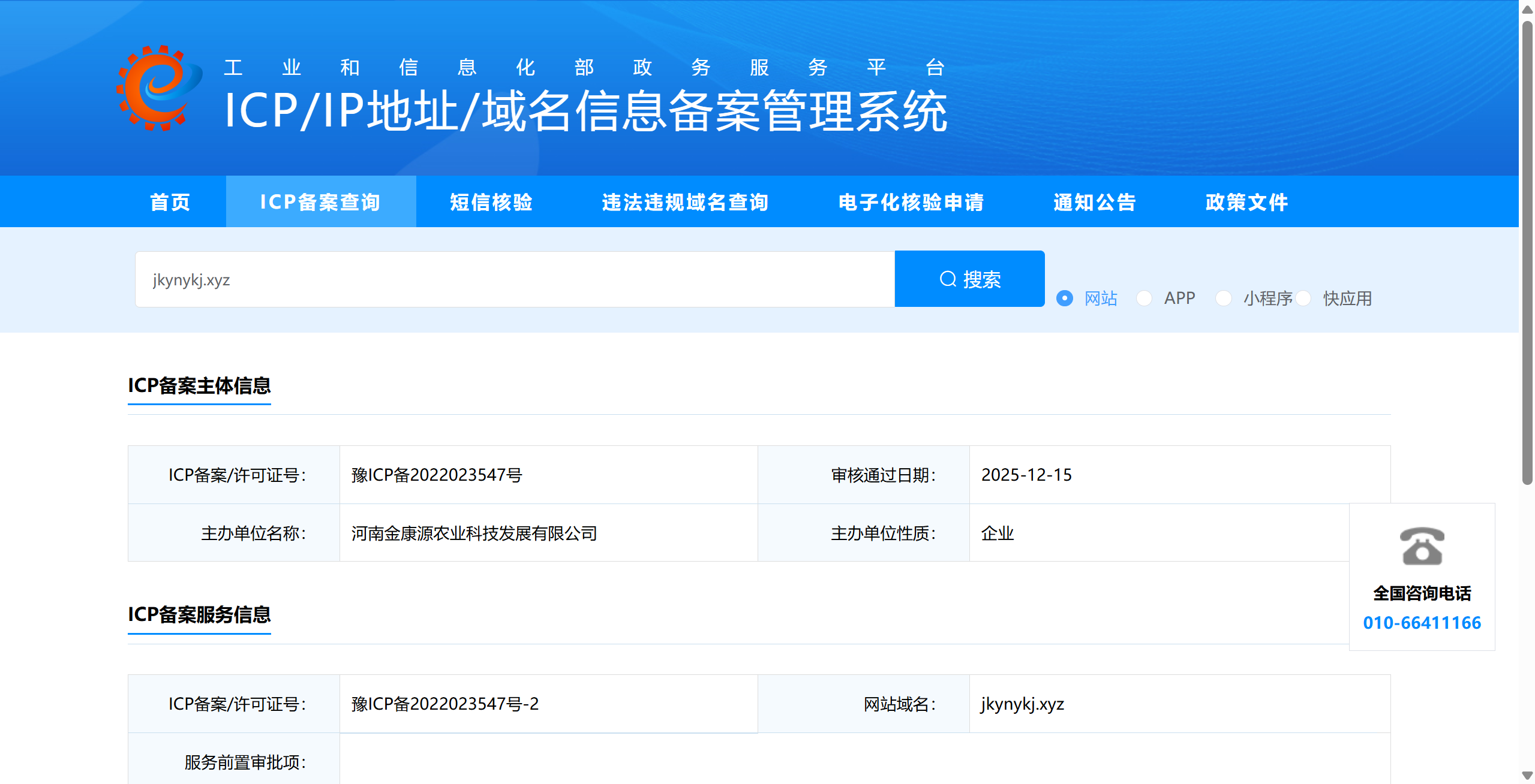 http://jkynykj.xyz/ 是一个已完成国家工信部ICP备案(备案号:豫ICP备2022023547号-2)的正规网站