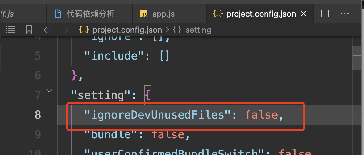 "ignoreDevUnusedFiles": false