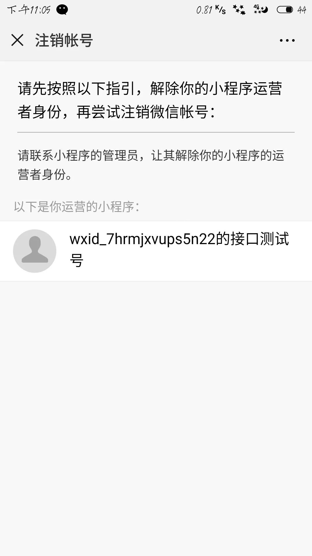 有你可以帮我解答一下吗我的小程序代码都没打完,不想搞了,然后微信我要注销显示这个怎么解决呢