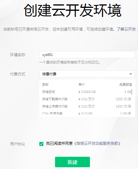 登录mp后台,查看开发-云服务中的云开发是否已经开通?