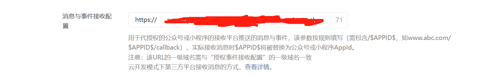 第三方平台-开发配置-开发资料,配置了如下的接收配置。