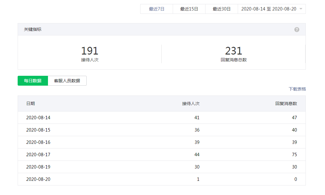 公众号后台=客服功能-客服数据- 显示今天8月19号是有消息内容的,但是网页客服端不显示任何新消息