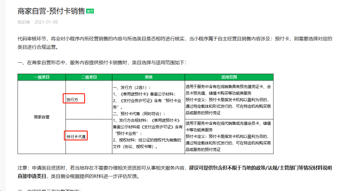 是需要开通商家自营类目吗?是申请发行方还是预付卡代售呢