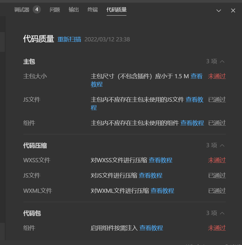开发者可通过开发者工具中的性能扫描工具提前发现代码中的可优化项: