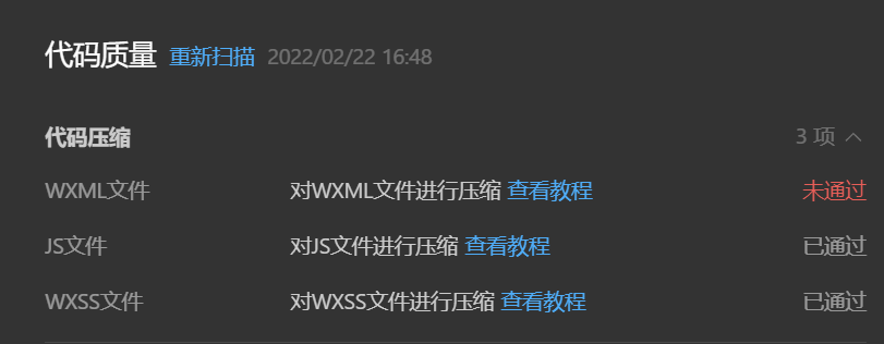 【必须】在工具「详情」-「本地设置」中开启「上传代码时自动压缩脚本文件」的设置