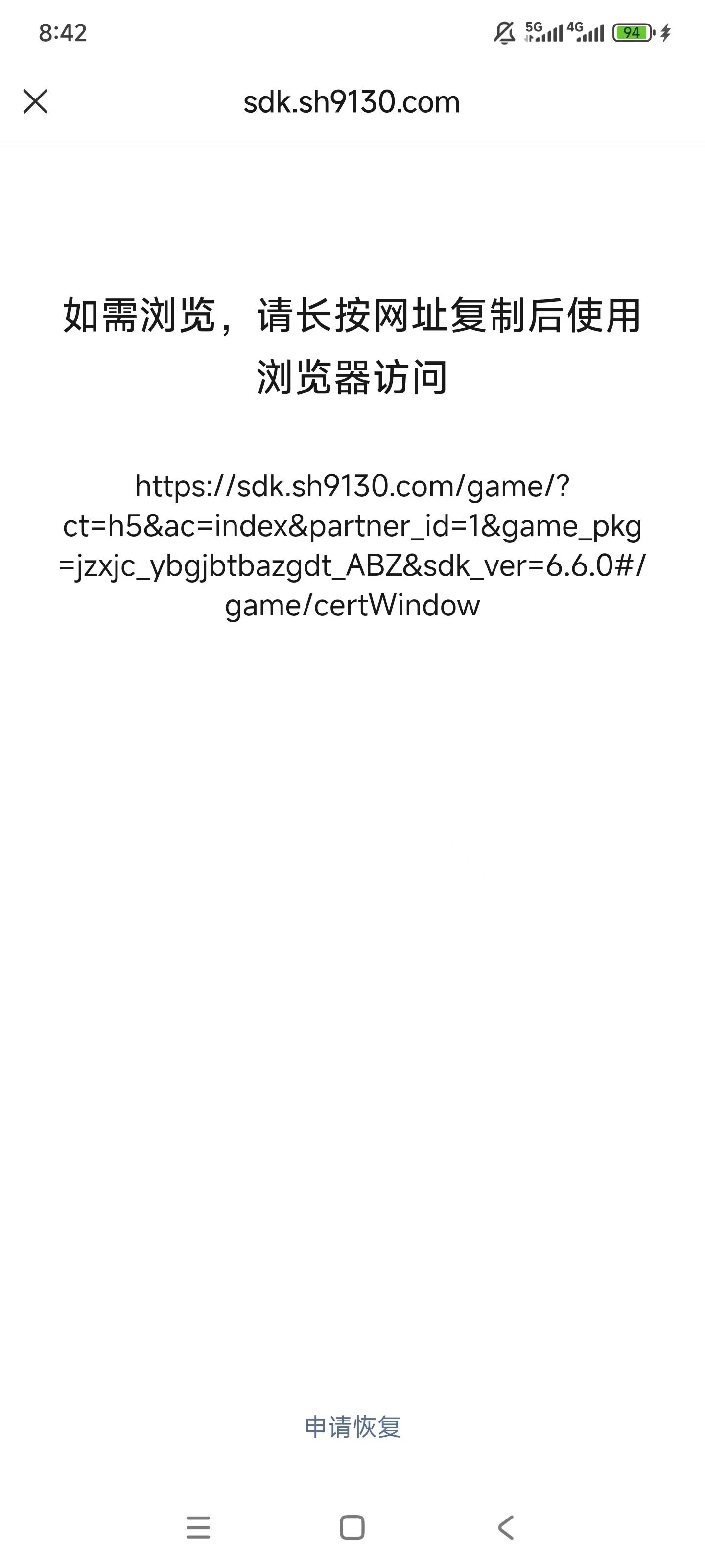 链接地址:https://sdk.sh9130.com/game/?ct=h5&ac=index&partner_id=1&game_pkg=jzxjc_ybgjbtbazgdt_ABZ&sdk_ver=6.6.0#/game/certWindow