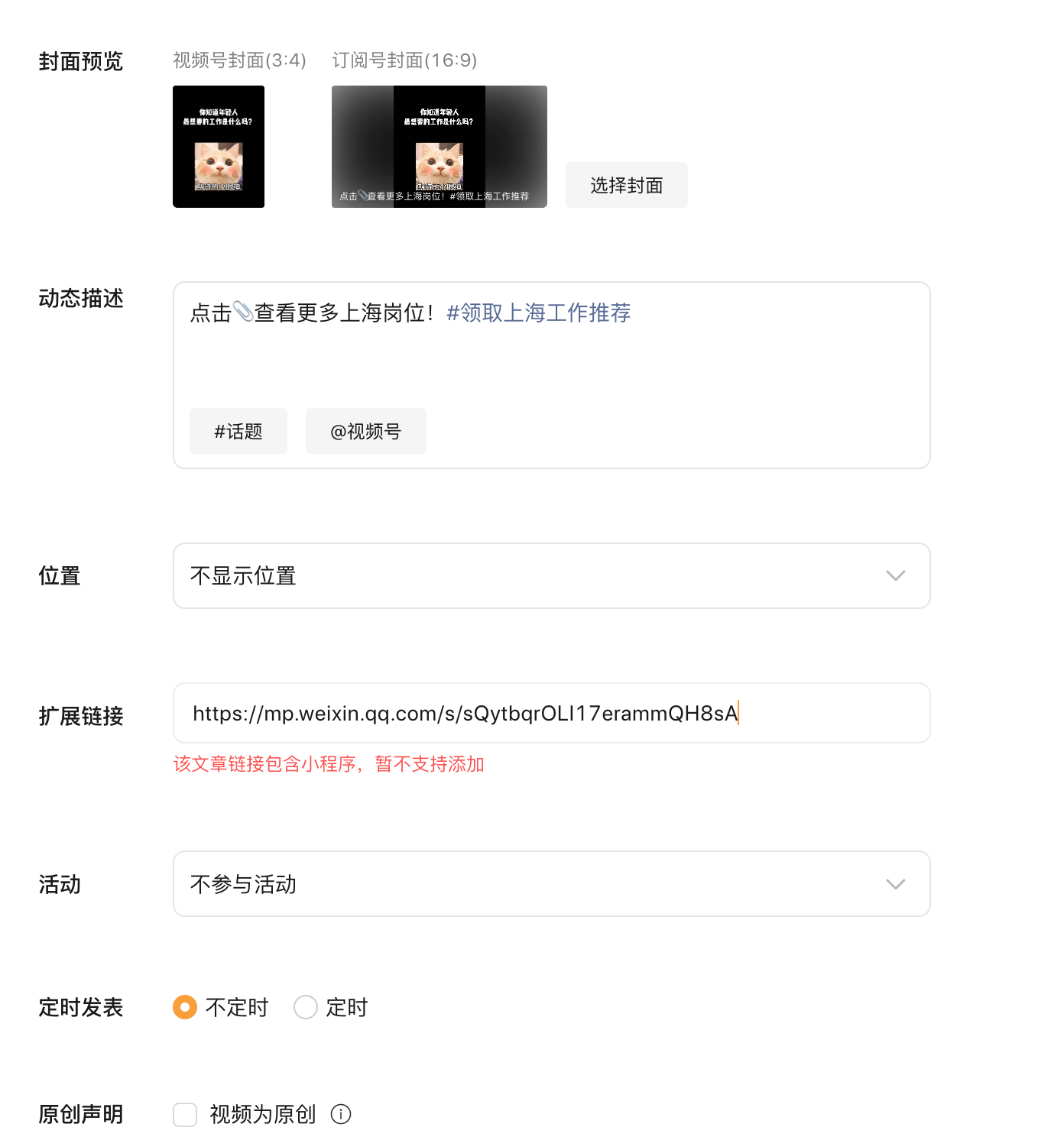 如上图,之前都可以挂载的推文今天发现不能挂载了,显示不能包含小程序,是什么情况啊?