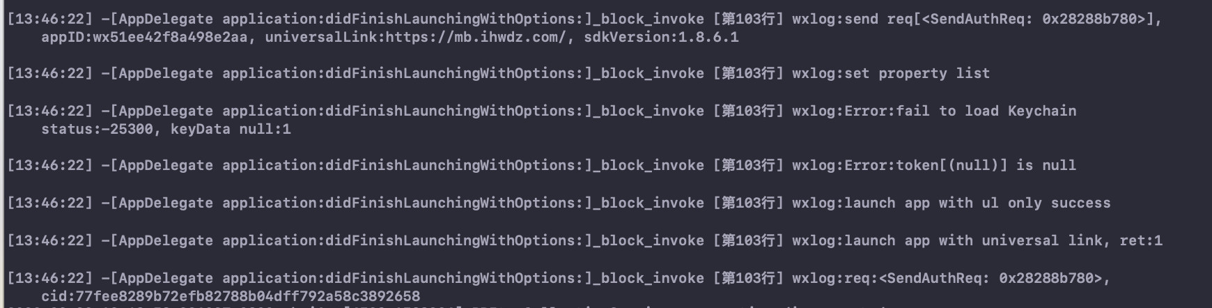 时间点:1、2020年3月24日17:13分 微信登录报universal link校验不通过