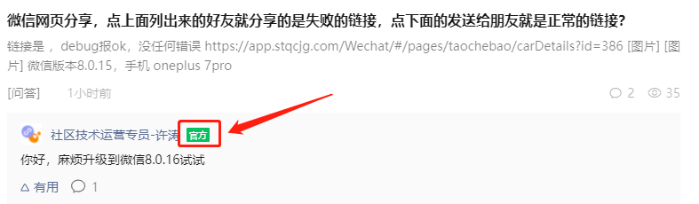 看社区回帖记录名称上有没有 官方 标志