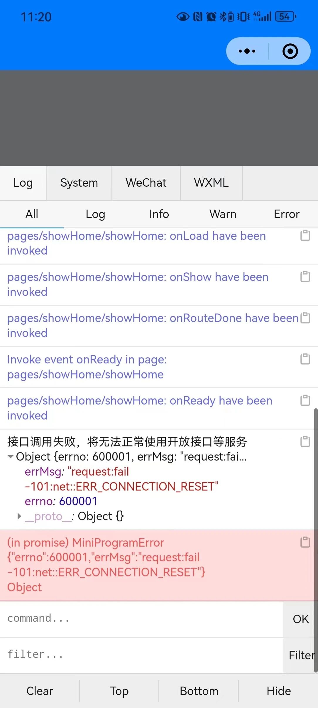 发布微信小程序体验版,连接wifi状态下体验版使用无任何问题,非wifi状态下,接口请求60001