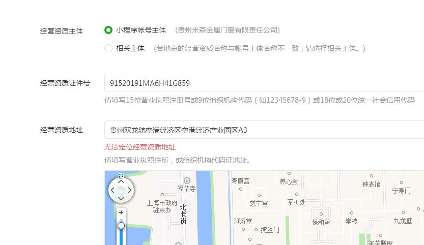 填写的证件号和地址都是正确的跟营业执照一致,为什么会显示无法定位?
