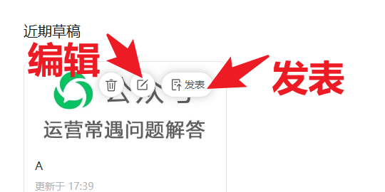 移到草稿上面,会显示删除、编辑、发表三个按钮。最后一个发表可以群发通知发表或不开启群发通知发表。
