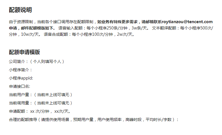你好,以文档说明为准,如果后续有变更会更新文档的https://developers.weixin.qq.com/miniprogram/dev/extended/service/translator.html