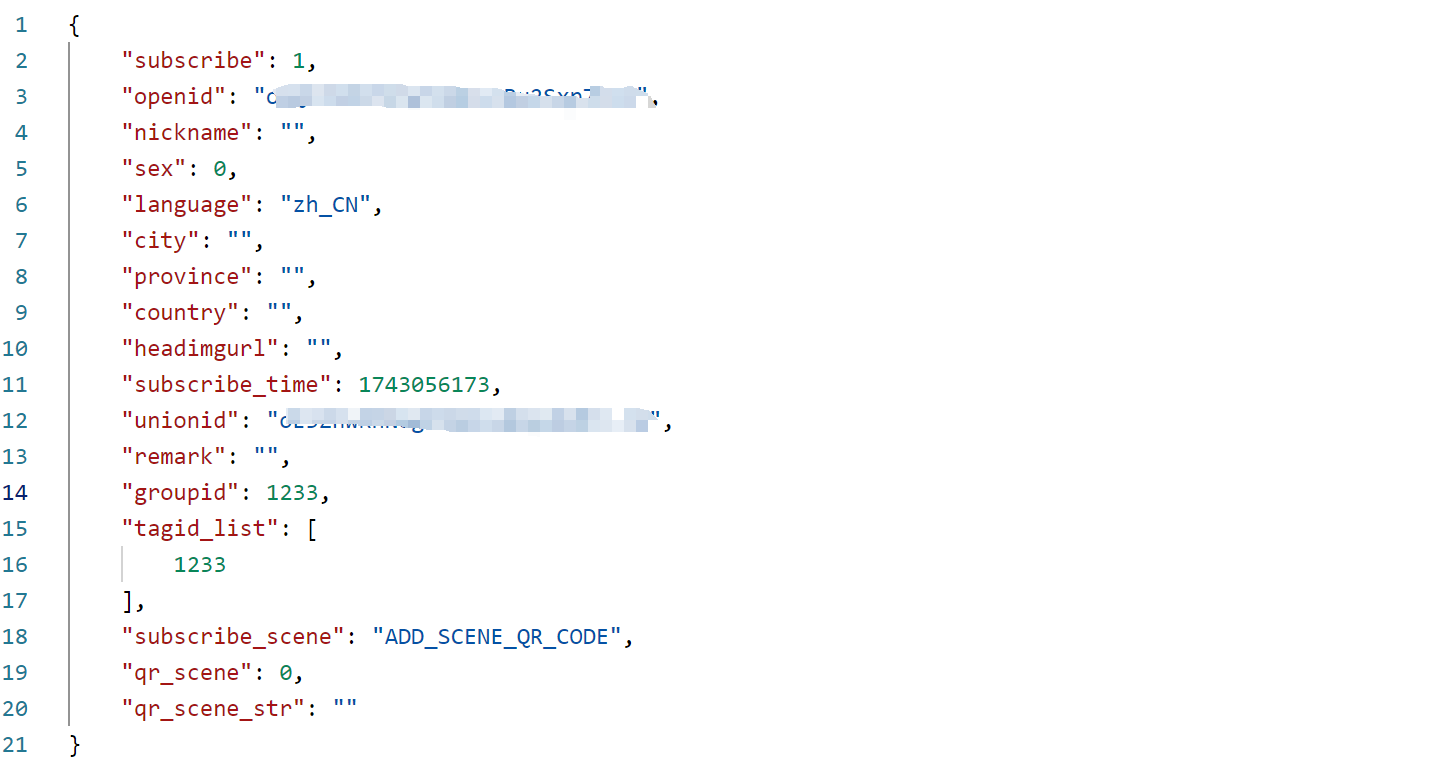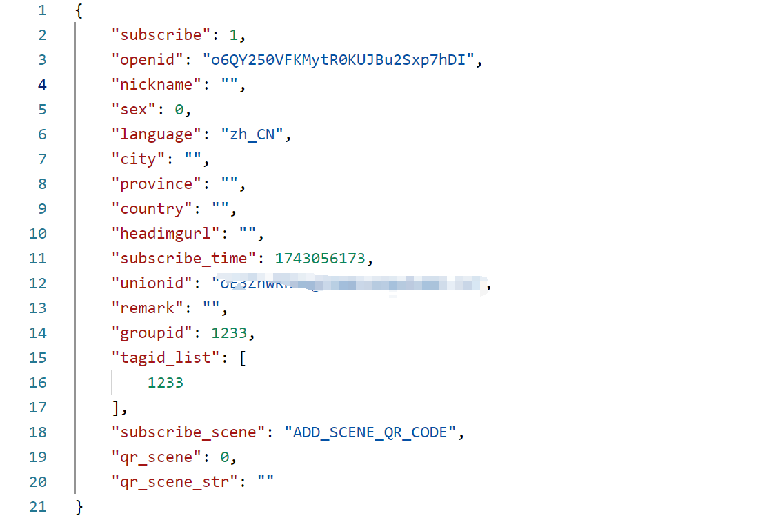 通过openid获取的获取关注信息的返回值