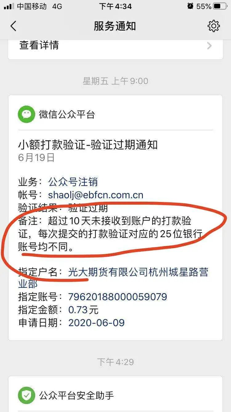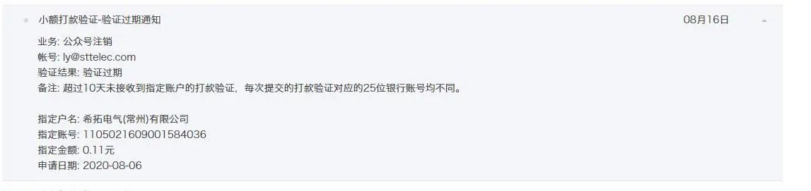 你好,我公司也遇到类似问题,已经小额打款3次,可是每次都收到“验证过期”的消息,请帮我们注销一下啊