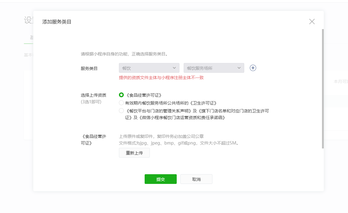 问题描述:我们是集团公司总部,用的总部资质申请的小程序,现在申请“服务类目-餐饮服务场所”类目的时候,需要提供卫生许可证,所以我们使用了门店的卫生许可证审核,在我们把《餐饮平台与门店的管理关系声明》及《旗下门店名单和对应门店的卫生许可证》及《微信小程序餐饮门店运营资质和责任承诺函》。请问,我需要怎么处理,才能顺利申请下来呢???