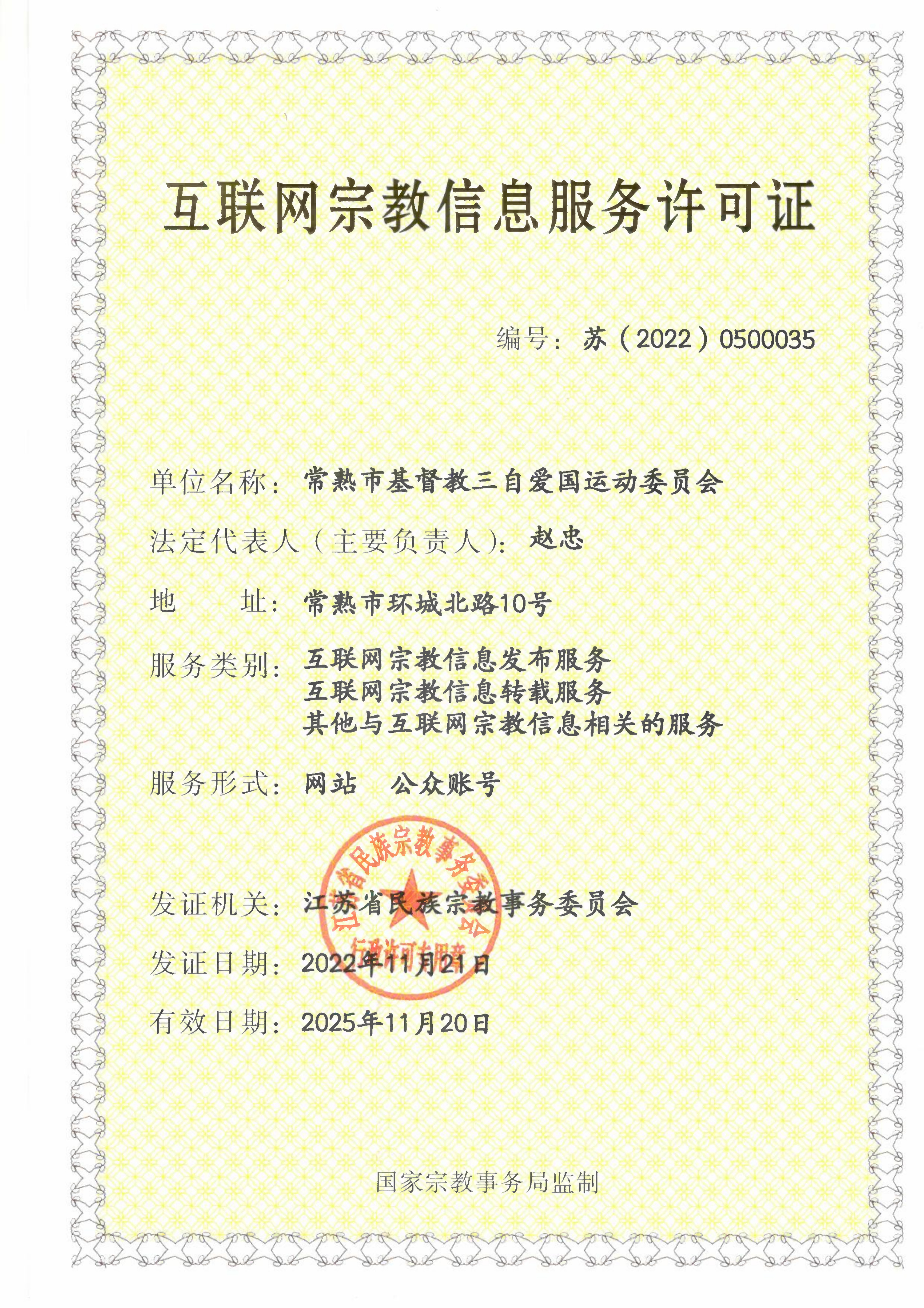 此外链为常熟市基督教三自爱国运动委员会的官网,已取得《互联网宗教服务信息许可证》并按要求规范网站内容,合法合规。请给予恢复,谢谢!