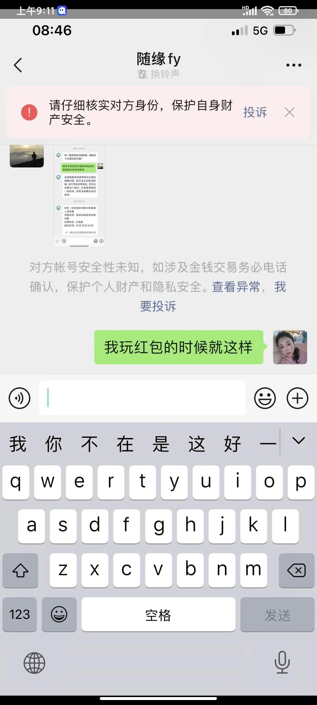 我和朋友聊天。我发的信息在她的手机上出现帐号异常,怎么解决?