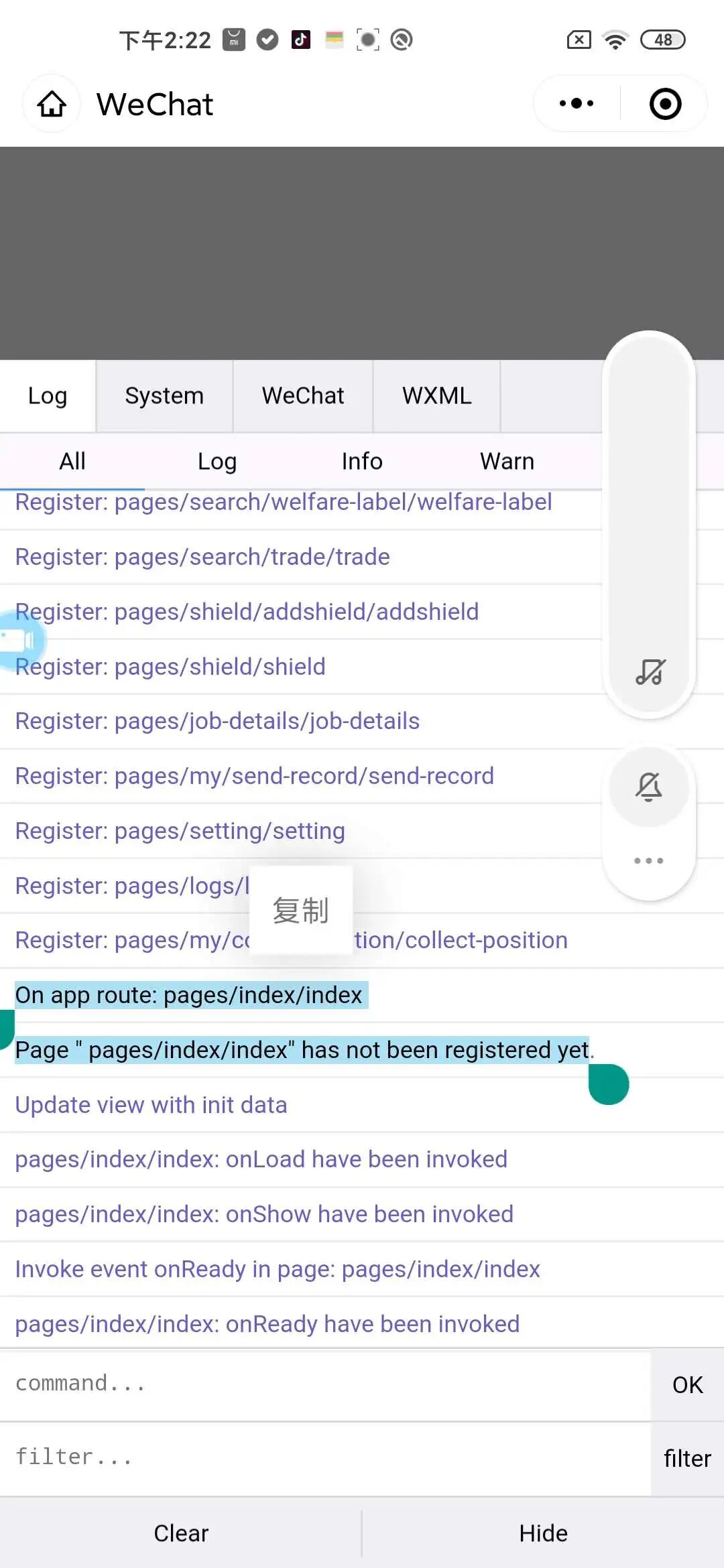 麻烦提供出现问题的具体机型、微信版本号、系统版本号,以及能复现问题的代码片段(https://developers.weixin.qq.com/miniprogram/dev/devtools/minicode.html)