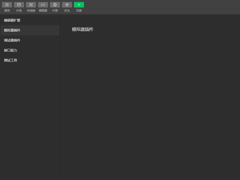 菜单栏-设置-扩展设置-模拟器插件,页面是空的,没有企业微信小程序模拟器,