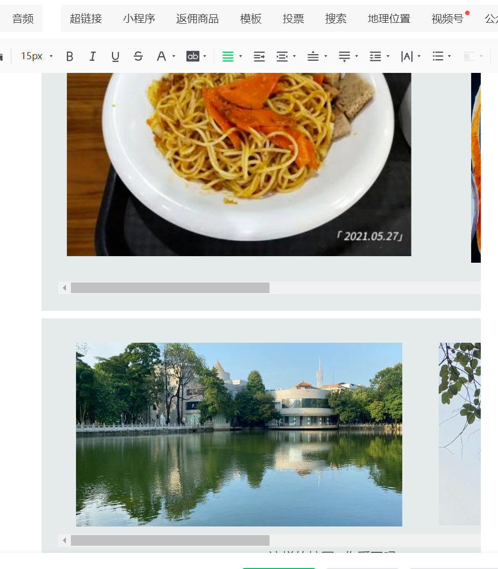 在电脑上排班时候图片是横向拉动的,但是到手机上就变成了单独的大图。