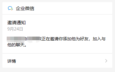 我在一个SaaS网站上注册了一个账号,是用微信注册的,对方网站应该拿到了我的个人微信openid,然后打营销电话,打完后直接会发一个这样的邀请通知给我。我在企业微信API接口文档上面无法找到相关的接口内容。