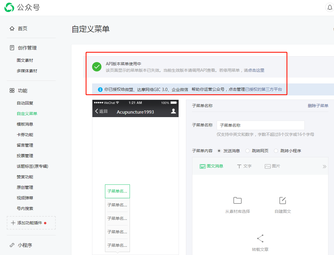 公众号自定义菜单这样显示,我改如何改动自定义套餐?