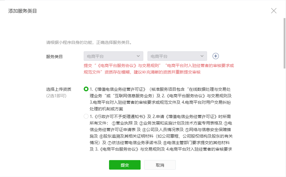 你好,经核实,用户最新提审版本提交的【《电商平台服务协议》与交易规则、电商平台对入驻经营者的审核要求或规范文件】资质的确存在模糊,无法辨认,建议以扫描件或PDF图片等形式上传。